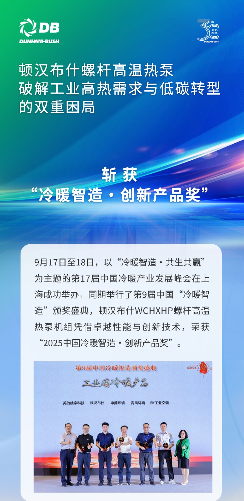 斩获“冷暖智造·创新产品奖”丨顿汉布什螺杆高温热泵破解工业高热需求与低碳转型的双重困局